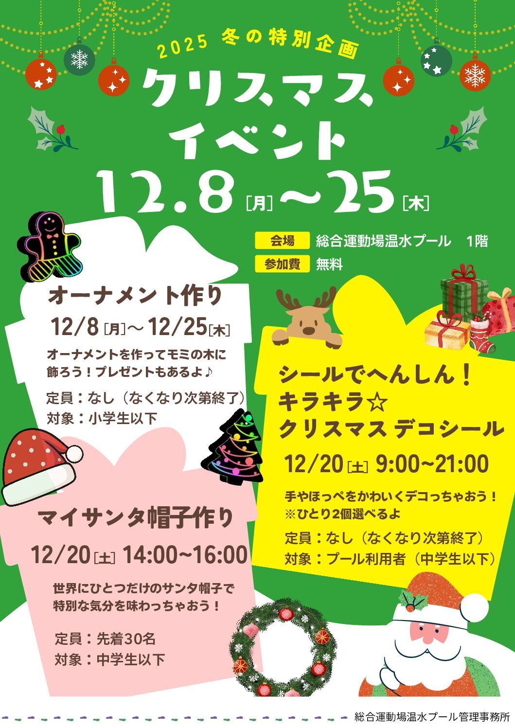 総合運動場温水プール クリスマスイベント 開催のお知らせ (12/8~12/25)