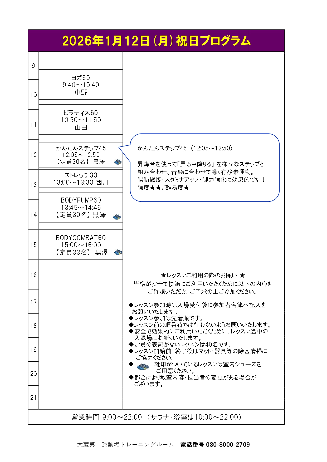 令和8年1月12日(月・祝)は祝日プログラムを開催致します。当日は通常プログラムとは異なりますので、予めご了承ください。