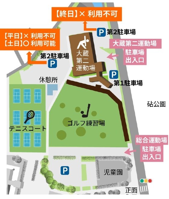 大蔵第二運動場「第2駐車場 利用制限」のお知らせ(1月19日~1月26日)