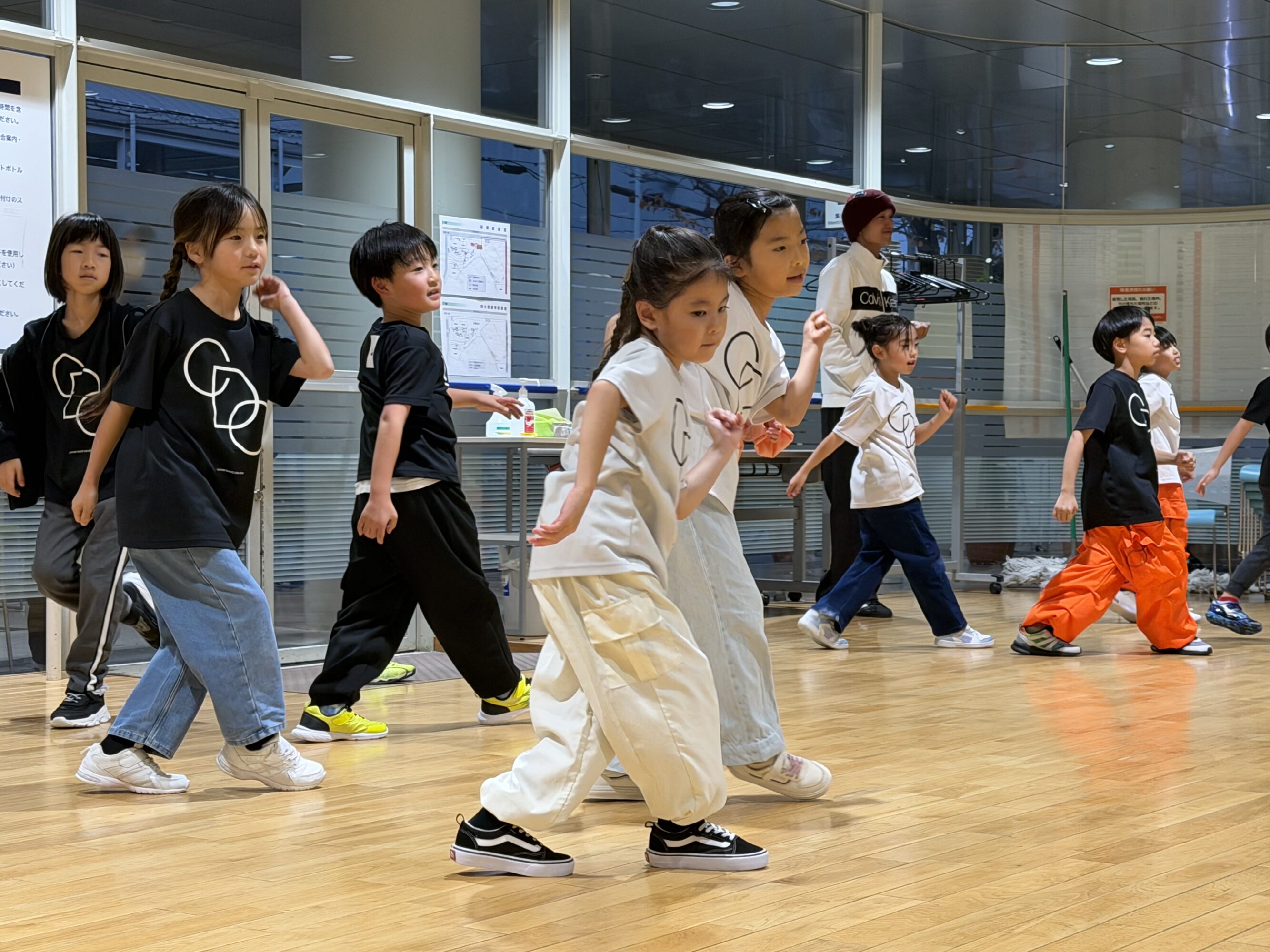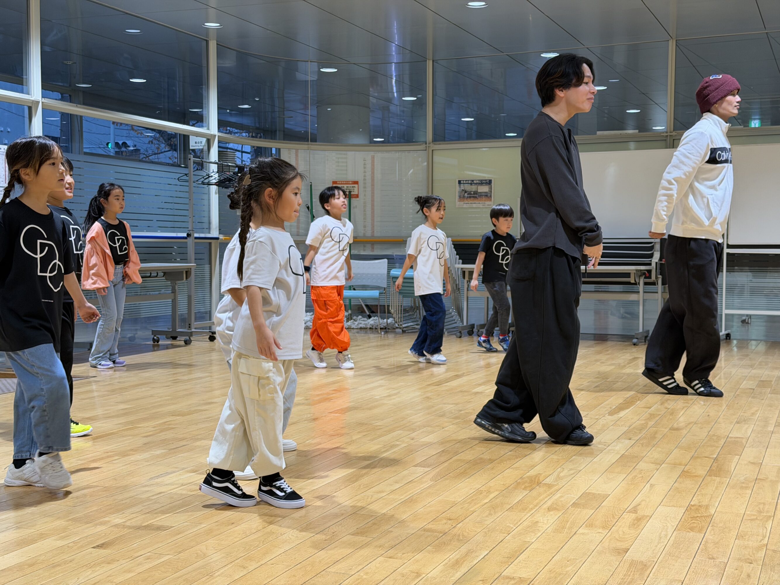 | プログラム | ・首/胸/腰(前後左右)のアイソレーションの習得 ・アップ、ダウンのリズムの応用の習得 ・クラブ、ボックス、フロントバックなどの基礎的なステップの応用の習得 ・8×4の振付を覚えることができ、フォーメーションを意識できる |